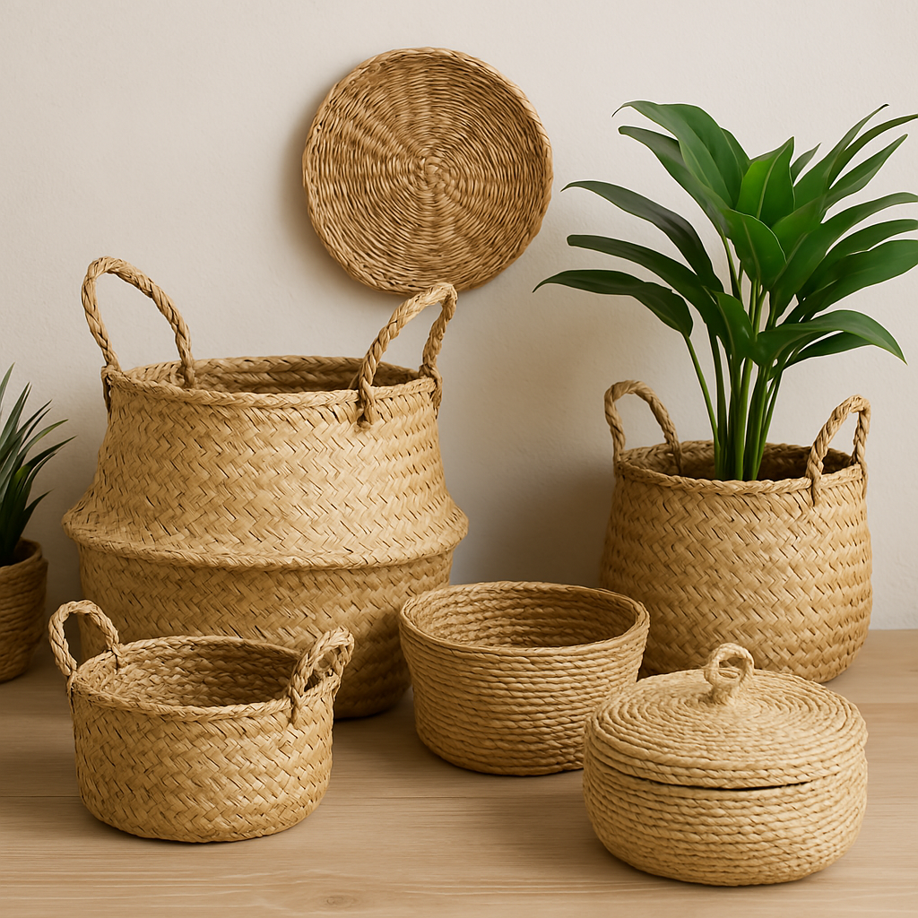 Du panier de rangement au modèle avec couvercle, chaque pièce combine utilité et charme naturel.